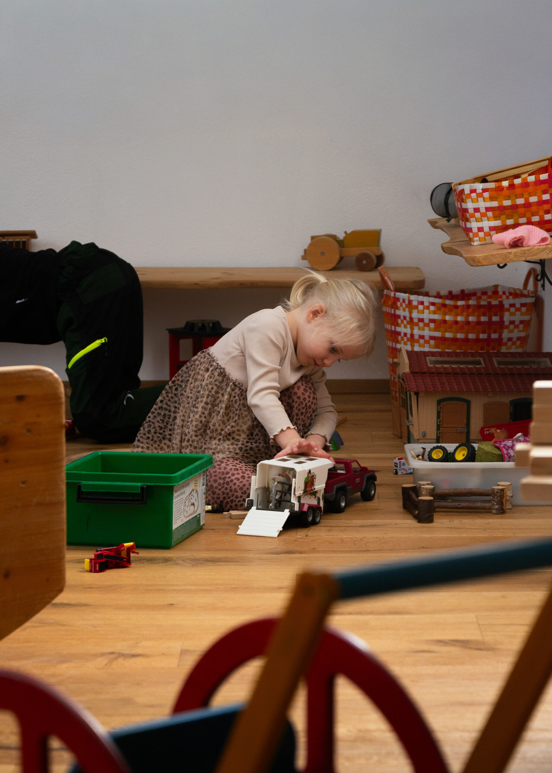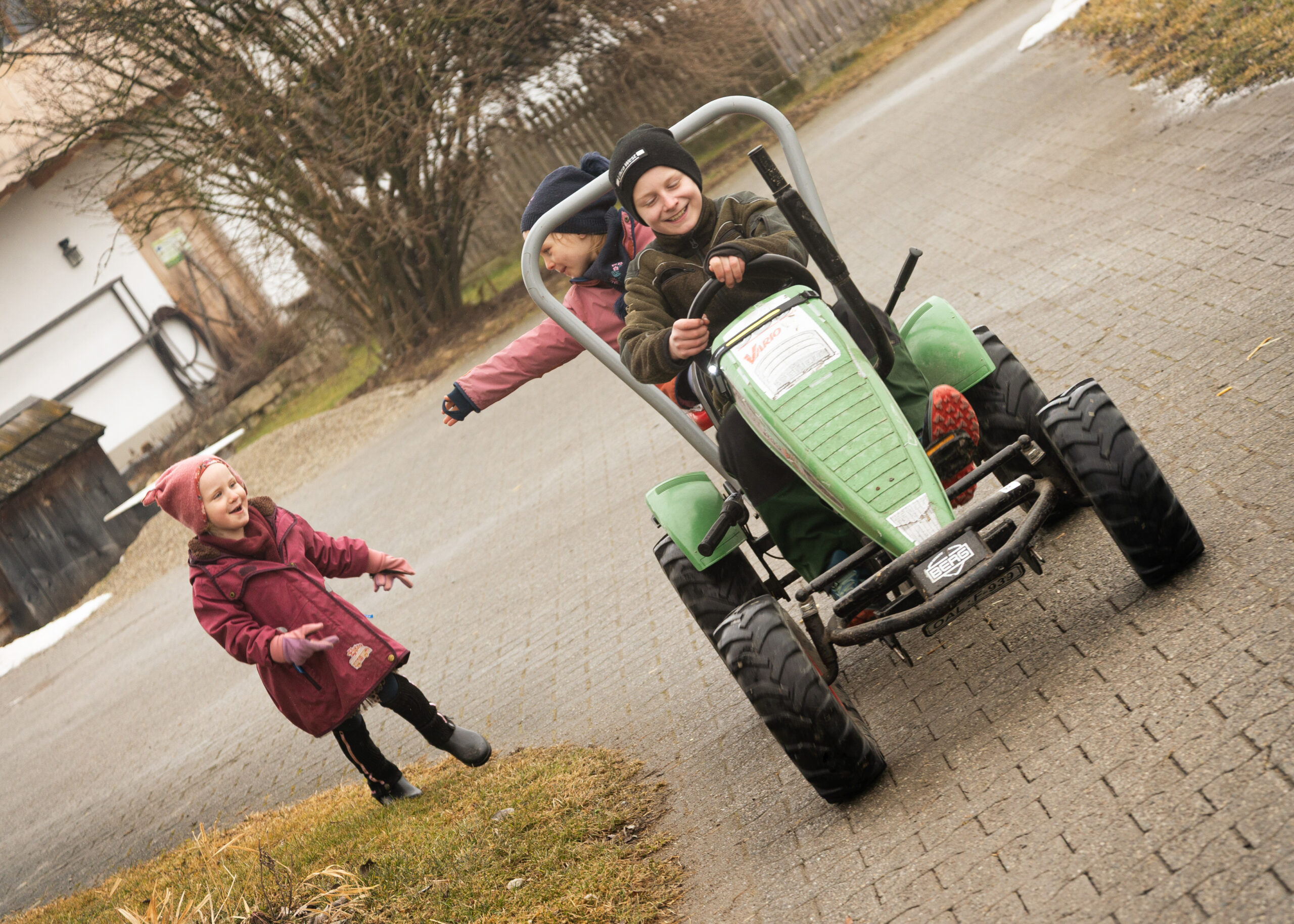 - Trampolin springen, austoben, spielen auf dem Spielplatz, mit dem Tretbulldog selber Bauer sein…